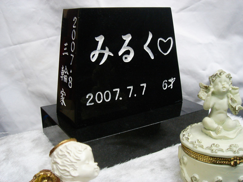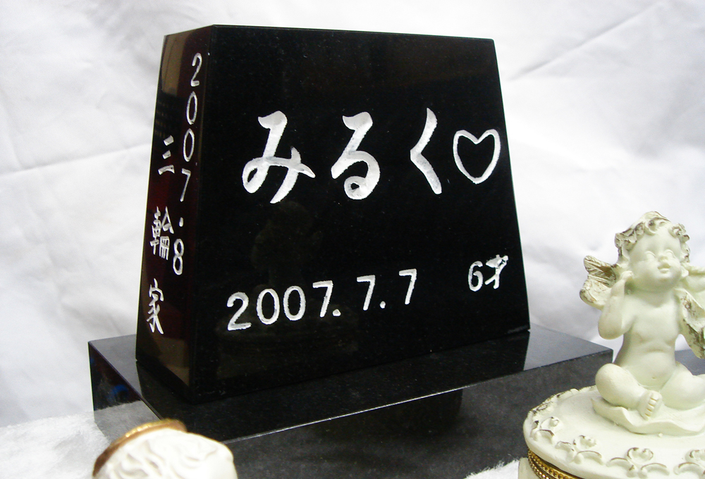 小さな墓石にペットちゃんのお名前や日付を刻み、霊園内に建立いたします。