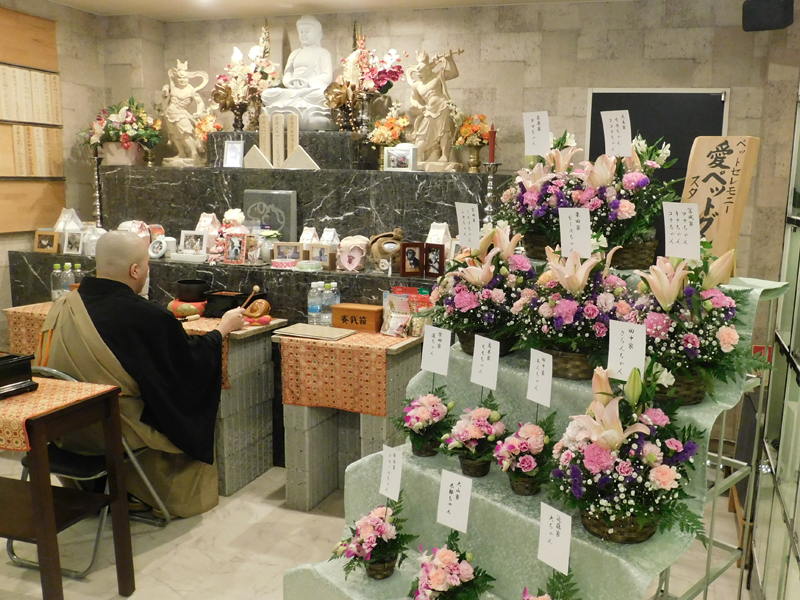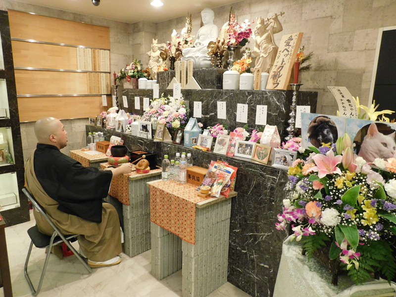 2階 納骨堂にて、ペットちゃんへの供養として住職に読経・回向(えこう)を手向けていただきます。