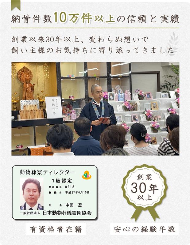 わかりやすい手続きと柔軟なサポートで、ご家族の負担を軽減します。霊園まで来園できない方は、ペットちゃんのご遺骨を送っていただければ、供養・納骨いたします。